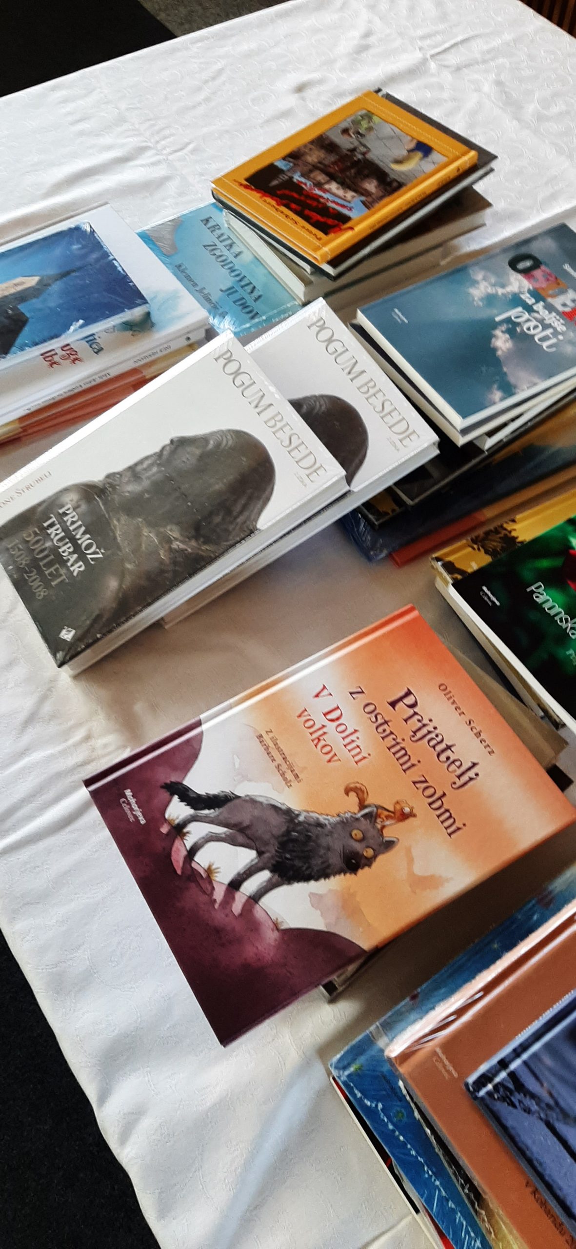Predaja donacije knjig akcije Podarimo knjige – Schenken wir Bücher