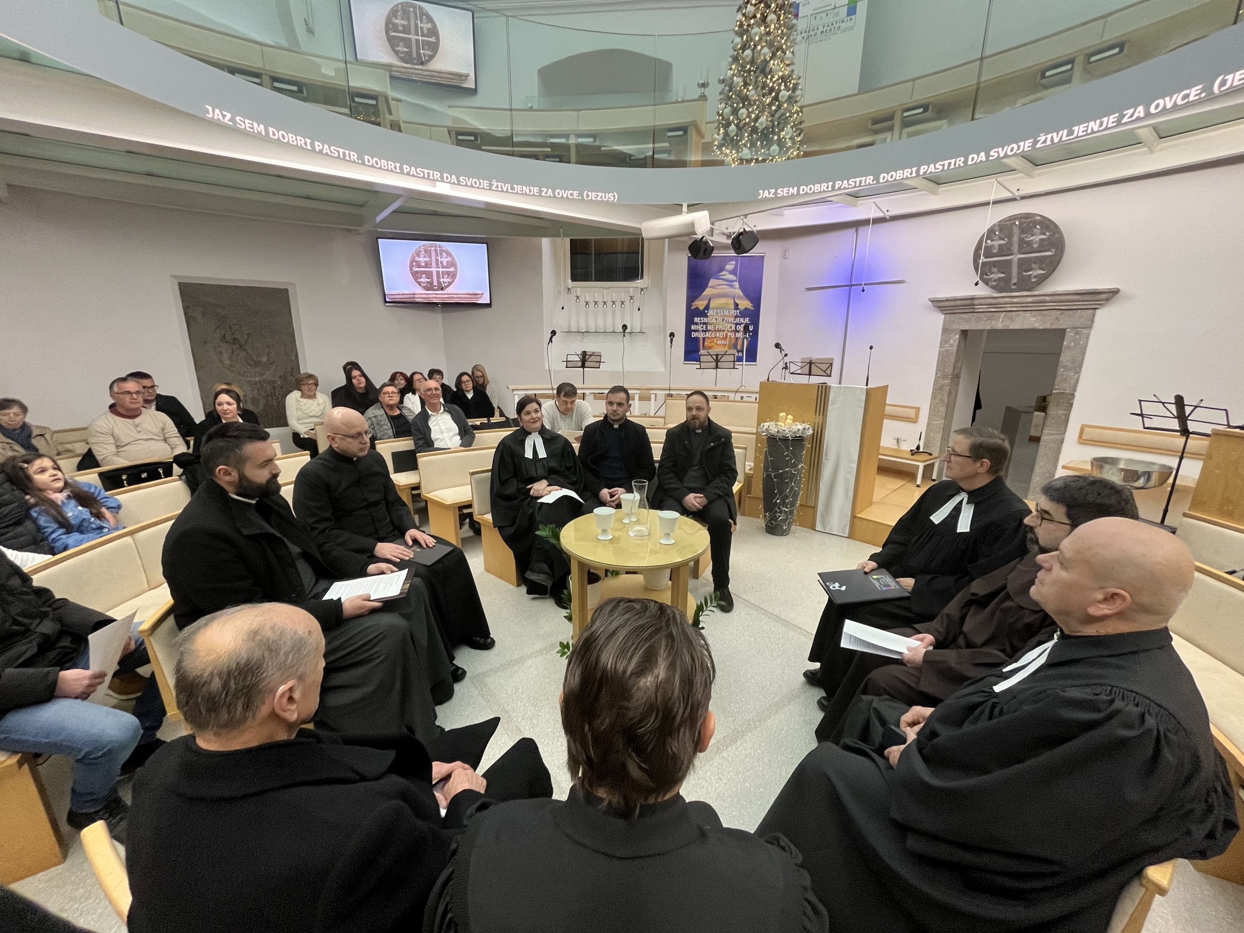 Hvala, da smo na tem ekumenskem večeru skupaj, kar je posebno pričevanje – ne kot gostje drug pri drugem, ampak kot bratje in sestre, ki stojimo pred istim Gospodom in poslušamo isto Besedo. V takih trenutkih človek začuti, kako dragoceno je, da se ne zapiramo, ampak delamo korake drug k drugemu. Ti koraki niso majhni: v vsakem se pogosto preizkusita naša vera in naša ponižnost, hkrati pa v vsakem koraku zažari nekaj zelo evangeljskega in zelo človeškega – želja, da bi bili resnično bratje in sestre.